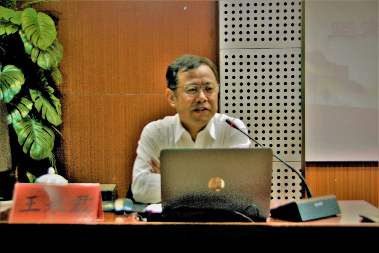 王永君指出,只有根据中国国情,坚定“四个自信”,勇于担当作为,进一步发展中国特色社会主义道路,坚定不移地捍卫中国特色社会主义,才能使中华民族得到长远发展。