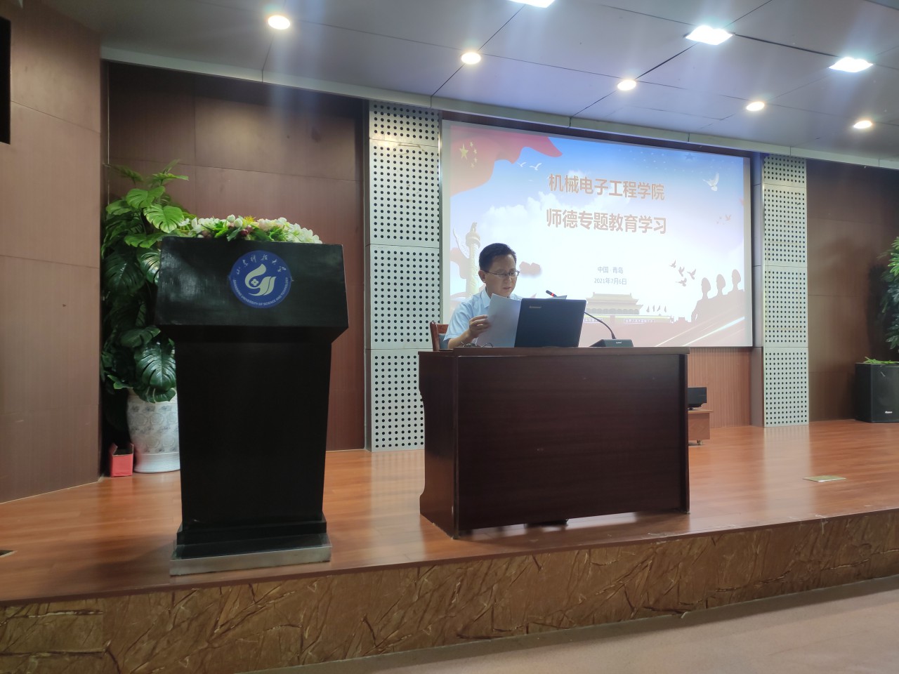 点击:为进一步强化学院师德师风建设,提高全体教职工职业道德素养,落实立德树人根本任务,7月6日,beat365官方网站在J8-202报告厅召开全体教职工大会,开展师德专题教育学习,韩宝坤做了题为《加强和改进新时代师德师风建设》的专题报告。
