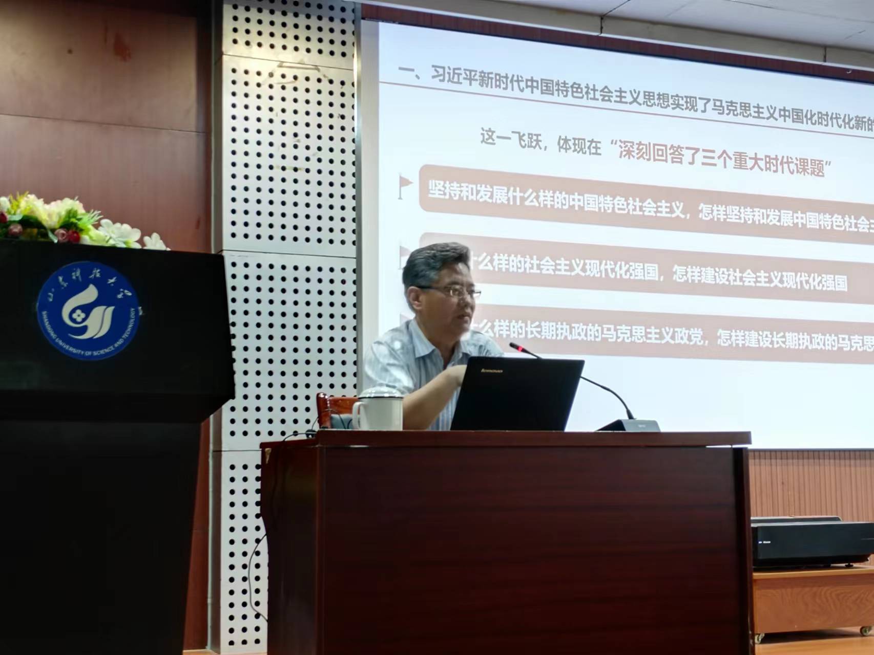 点击:为深入推进学习贯彻习近平新时代中国特色社会主义思想主题教育,筑牢思想根基,引导教师坚持不懈用习近平新时代中国特色社会主义思想凝心铸魂,6月20日下午,beat365官方网站党委书记李双立在J8-202报告厅讲授题为“深入学习贯彻习近平新时代中国特色社会主义思想,全面落实立德树人根本任务”的专题党课。全体教工党员参加党课学习。
