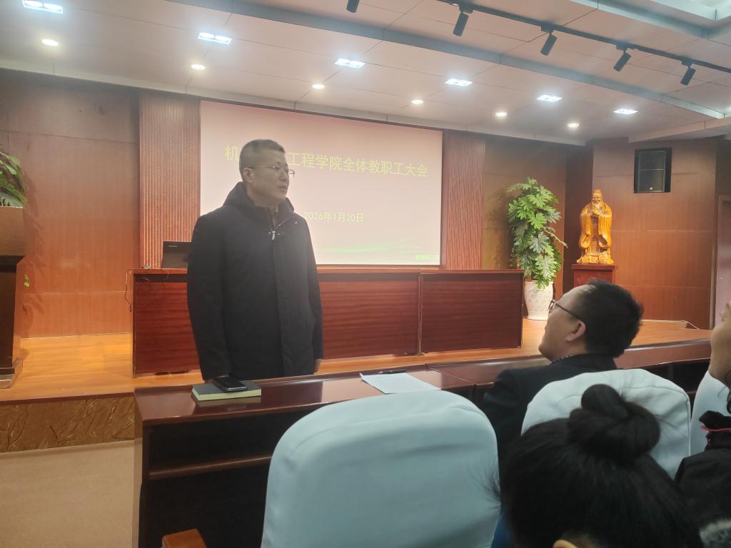 院长张强从党建、教学、科研、学科建设、人才工作、学团工作、对外合作等方面,对学院2025年的工作作了总结,并对学院2026年的重点工作进行了部署,强调要一要做好机械工程专业博士点申报、新一轮学科评估等工作;二要强化学院科研方向凝练和内涵建设,各科研方向做好“传、帮、带”工作;三是加强专业建设,认真推行专业认证,做好低空经济现代产业学院的建设工作;四是继续强化国际化工作。