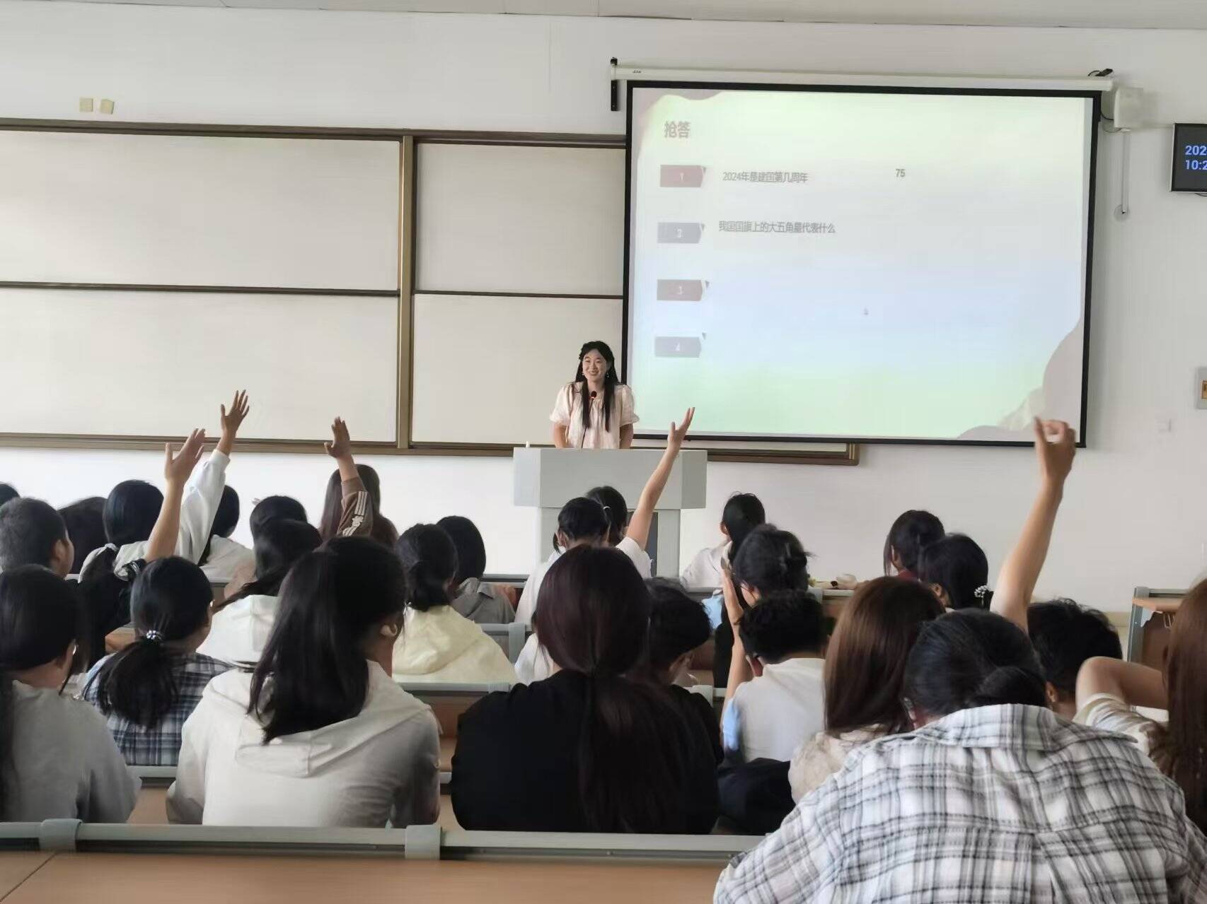 活动中场还穿插了互动环节,同学们积极参与,在欢笑中领悟家国情怀,在互动中培养社会责任感。