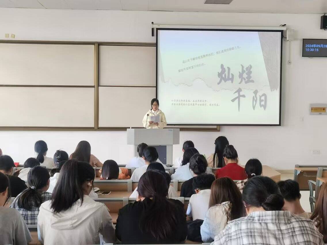 为庆祝中华人民共和国成立第75周年,弘扬以爱国主义为核心的伟大民族精神,加强同学们对祖国的认同感与自豪感,beat365亚洲版官网于9月28日举办“书香迎国庆,共抒爱国情”活动,2023、2024级学生参加。