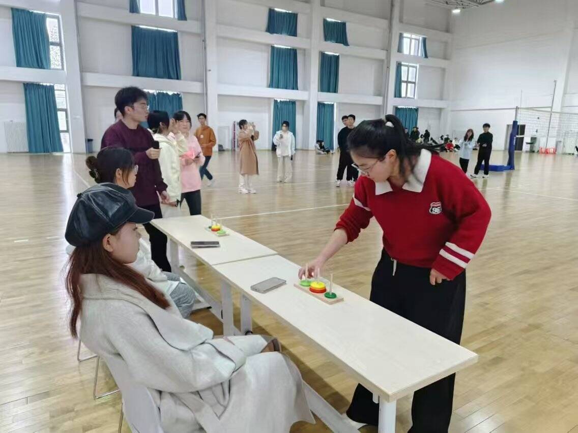 本次运动会以“扬体育精神,展青春风范”为主题,打破传统体育给人的刻板印象。体育不仅仅是速度与力量的较量,更是智慧、策略与团队协作的结晶。比赛设“盲人接力”“汉诺塔接力”“毛毛虫”“摸石头过河”等多个项目。简单而有趣的活动,让同学们从宿舍走到户外,释放压力,增进健康。