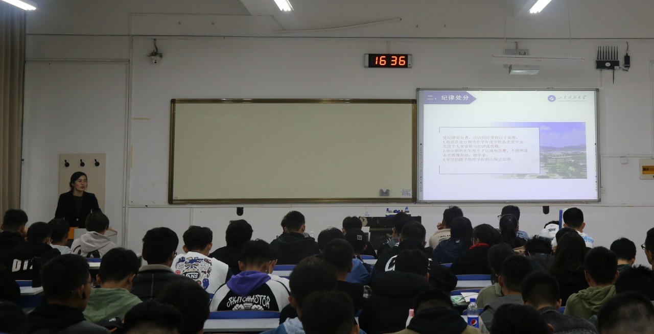 点击:10月27日下午,beat365官方网站在J14-205举办学生干部培训班第四期讲座。学生工作部教育管理科科长李莉老师应邀担任主讲人,beat365官方网站辅导员杨治宽老师出席培训并主持,各年级团支书、班长、副班长及学习委员参加了此次培训。 培训过程中,李莉围绕学校的规章制度向同学进行讲解,根据各种奖惩规则重点解释了部分重要的校规校纪,就班级评优与奖学金评定阐述了违反校纪校规对大学生活与学习的影响,通过讲述了多个生动形象且具有说服力的实例,使得同学们充分认识到遵纪守法的重要性和必要性,为日后成为一名德智体美劳全面发展的文明大学生打下坚实基础。 课程中,同学们用心倾听,积极互动,在轻松愉快的氛围中接受校规校纪教育。此次活动提高了学生干部对校纪校规的认识,进一步开拓工作创新性思维。(通讯员:廖思懿 摄影:殷允浩)