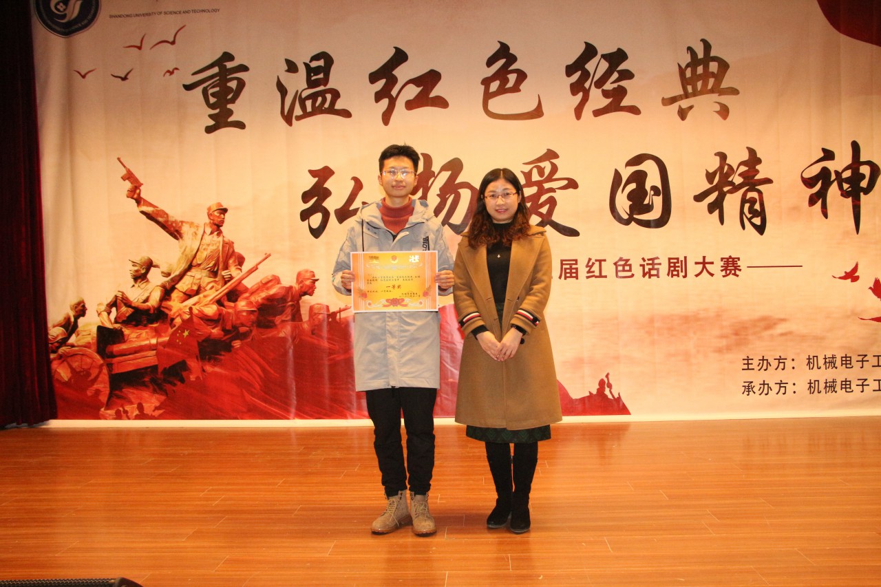 点击:为加深大学生对红色文化的认识,厚植爱国主义情怀,营造爱党爱国爱校的良好氛围,喜迎建校70周年华诞,11月29日,beat365官方网站在大学生活动中心报告厅举办第五届“重温红色经典,弘扬爱国精神”红色话剧大赛。校团委组宣部部长耿倩,beat365官方网站团委书记樊玉华,辅导员杨治宽,学生代表程龙、许楠、崔龙飞出席本次大赛并担任评委。