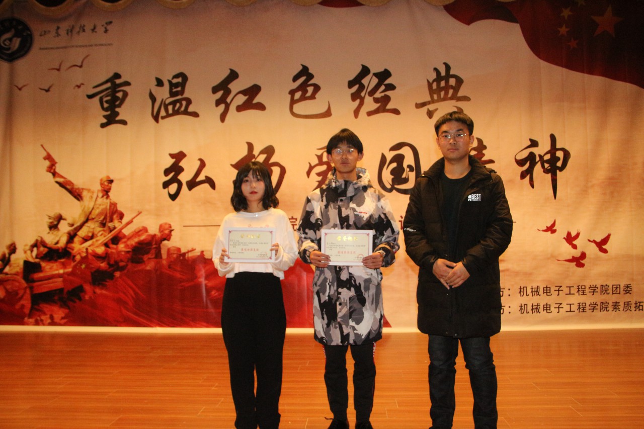 最终,经过层层筛选和比拼,智造20-2班获得大赛一等奖,机设20-3班、机电20-5班获得二等奖,机设20-4班、智造20-3班、能源20-3班、能源20-1班获得三等奖。智造20-3班袁庆新、智造20-2班郭星言分别获评最佳男演员、最佳女演员。