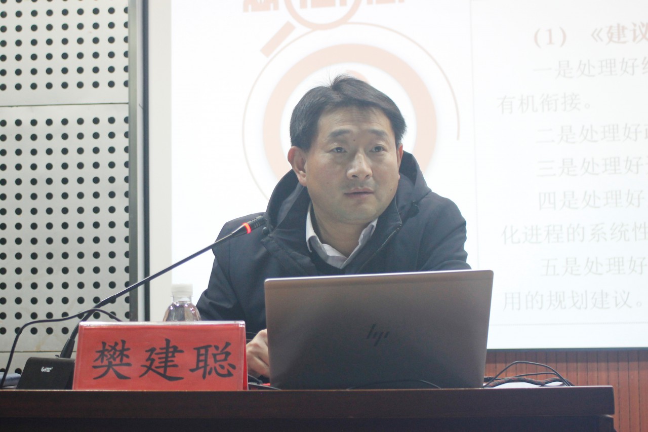 会上,樊建聪围绕习近平总书记在全会上的重要讲话精神和《建议》,介绍了重要时间节点、会议的主要议程、重大理论成果等基本内容,深刻阐述党的十九届五中全会的主要精神及重大历史意义,列举了“十三五”时期取得的决定性成就,并结合新冠疫情详细分析了国际形势的的变动,鼓励同学们关注民生,勇担重任,努力成为下一阶段发展的支柱力量。