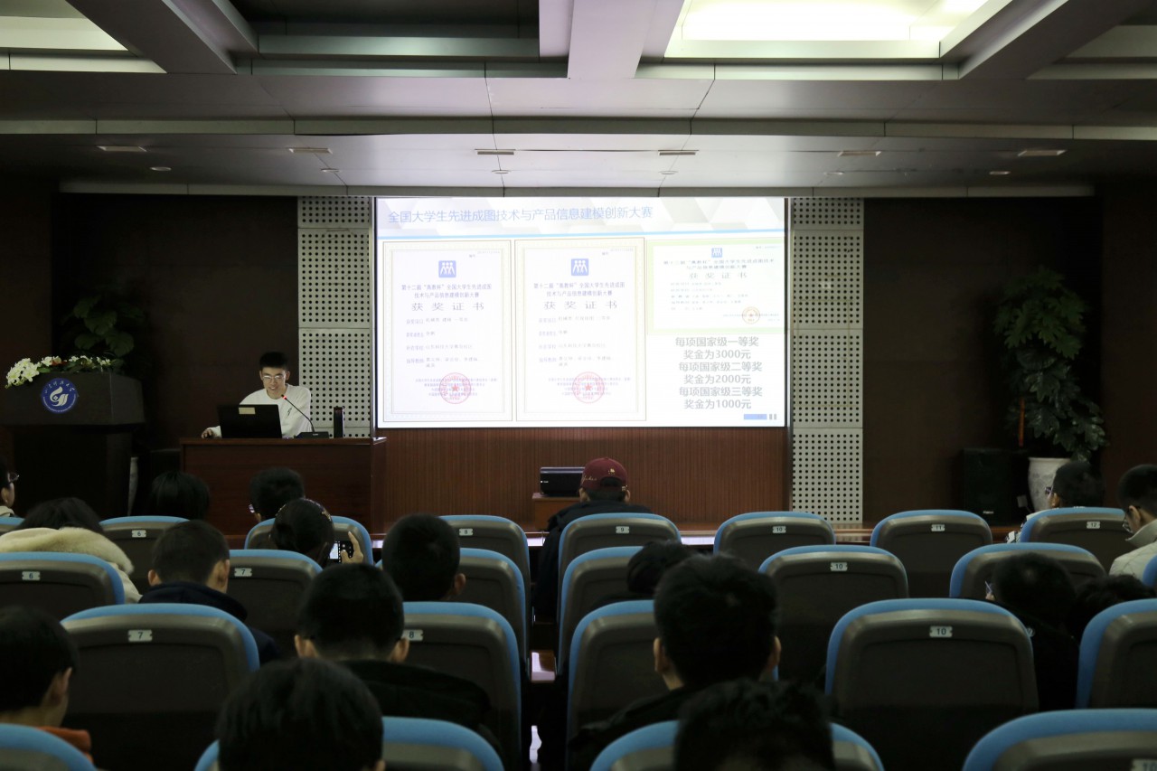 张帆从三维建模的简介、应用与创新三个方面进行讲解。他结合同学们的建模作品及建模所用到的软件介绍了三维建模的大致内容,使同学们对三维建模有基本的了解。张帆以自己的比赛经历为例,重点讲述了三维建模在比赛上的应用,并向同学们介绍了校赛、省赛及国赛的时间节点等问题,传授备赛经验。最后,张帆对获奖作品的结构和原理进行分析,讲解了创新项目的设计思路,鼓励同学们要参加科技比赛要发散思维,拓宽视野,敢于创新。