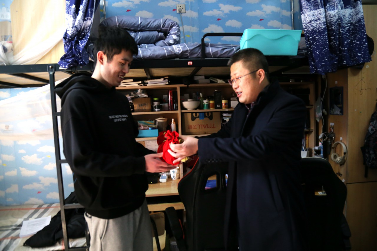 点击:距离2021考研还有三天的时间,12月23日,beat365官方网站党委副书记、副院长陈猛,团委书记樊玉华,2017级辅导员林美玫、曲岩,走进考研同学的宿舍,为正在努力备考冲刺的考研学子送去温暖与祝福。