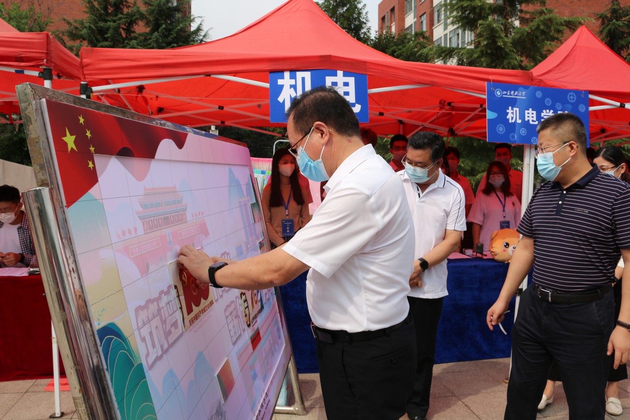 期间,校党委书记罗公利与各机关部门负责人代表莅临beat365官方网站迎新报到点,视察学院迎新准备情况,并体验学院为2021级新生制作的校庆拼图。