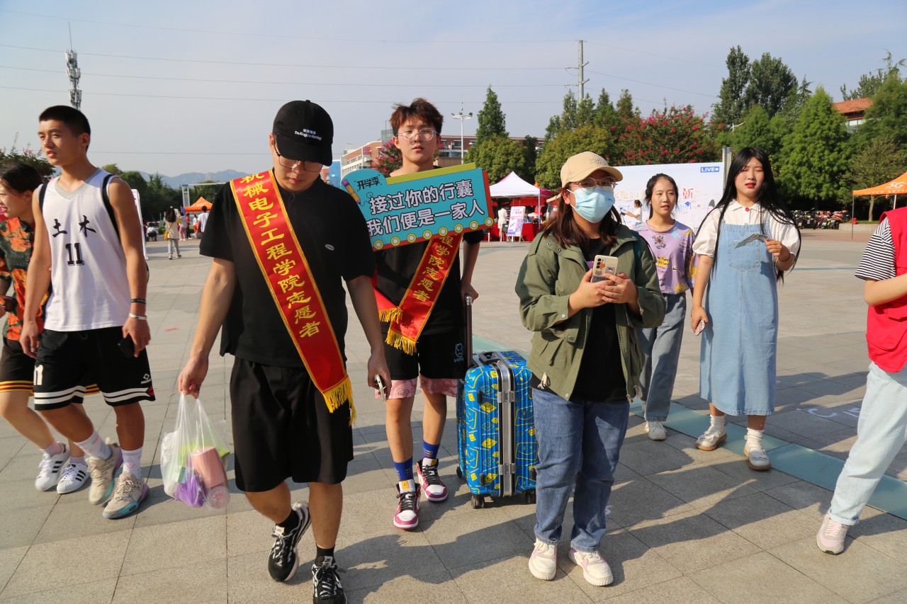 受疫情的影响,当天返校的学生均为省外学生,因家长不能进入校内,老师、志愿者和同学早早到位,分别在学校南门、C区停泊点、尤乐卡广场设立引导点,面对一张张青涩的面孔,志愿者们用微笑欢迎新同学,热情地为他们拿取行李,带领前往宿舍,忙碌的身影川流在美丽的科大校园,欢笑声、交谈声让初来乍到的新生感受到了温暖与亲切。