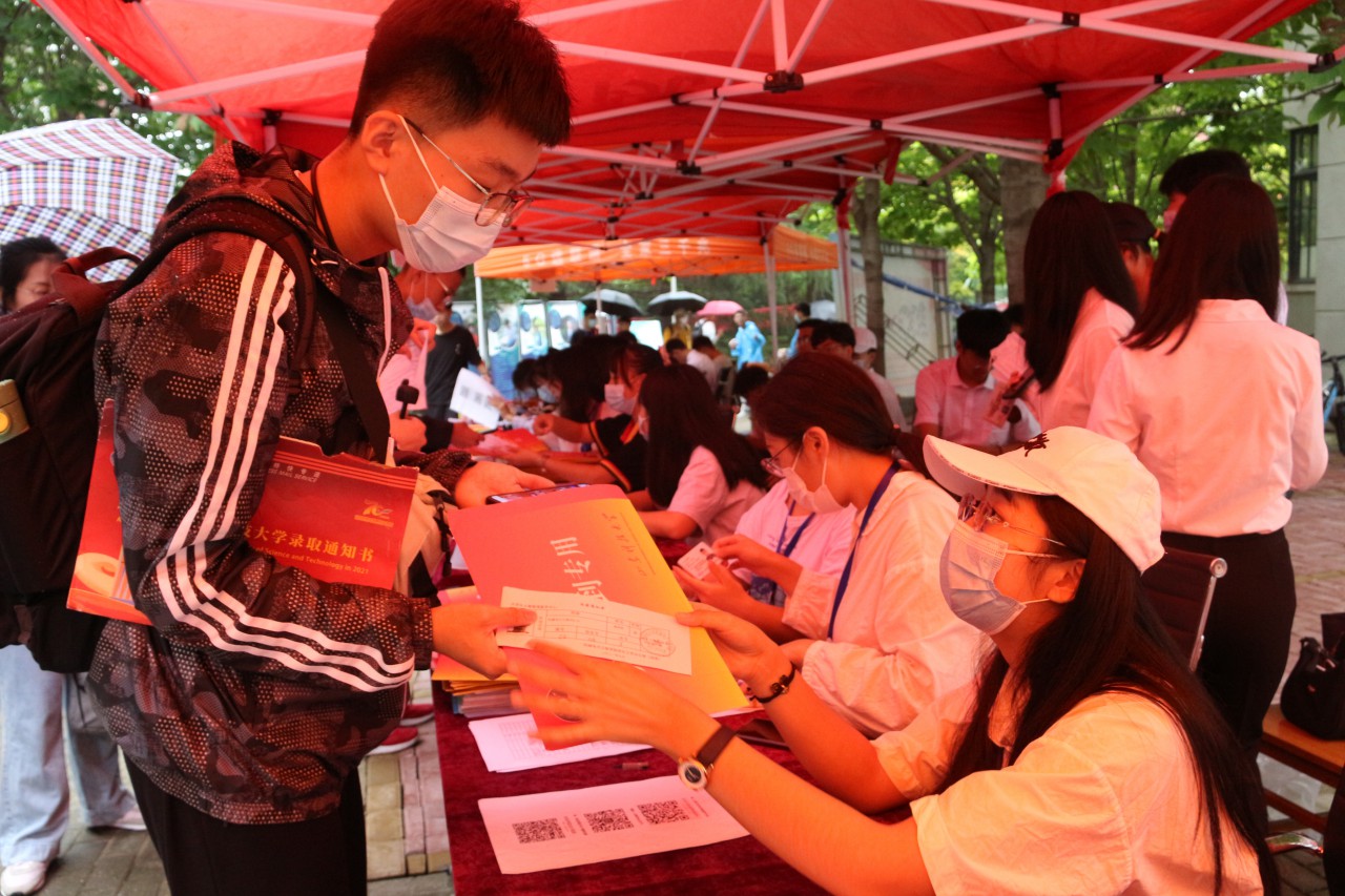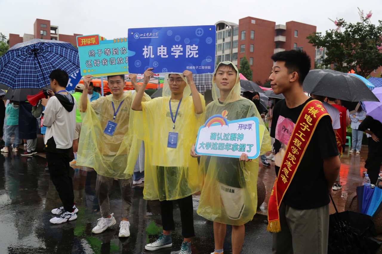大雨浇不熄机电师生迎新的热情。雨天里,志愿者们身披雨衣,用微笑点亮阴霾,帮助2021级新生搬运行李,早已分不清身上是雨水还是汗水;报到点上,工作人员克服潮湿和雨水,坚守岗位,尽心耐心为新生办理报到手续;为了避免让新生在办理手续的过程中淋雨,beat365官方网站搭建帐篷一条龙,为新生遮风挡雨。