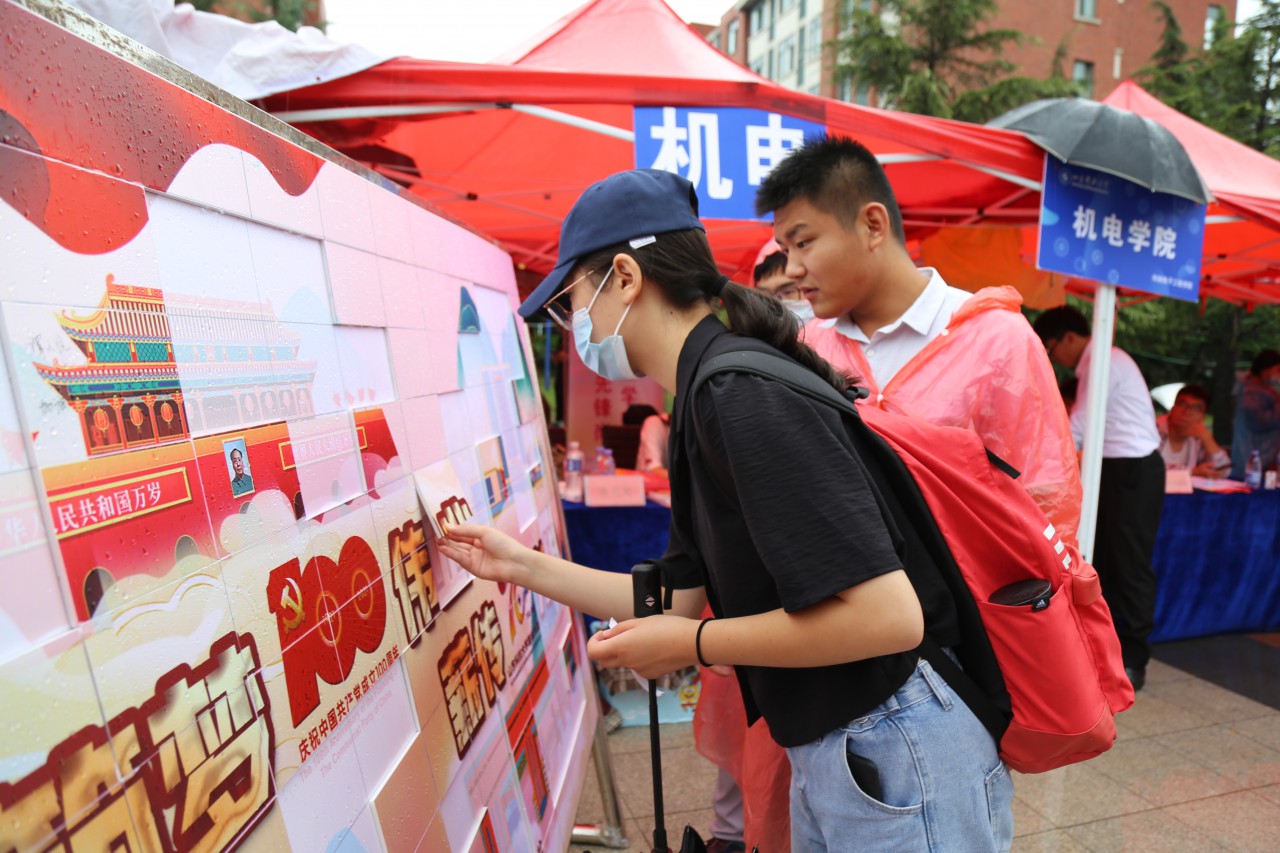 同时,beat365官方网站的迎新方式也是创意满满:用拍立得为新生拍照,并把照片按照“100”“70”的图样粘贴,热烈庆祝建党100周年、建校70周年;由新生每人手持一块碎片,拼起“筑梦100伟业 薪传70芳华”的完整图案,既有浓浓的爱国爱校教育意味,也象征着beat365官方网站是一个大家庭,每一位学子缺一不可。