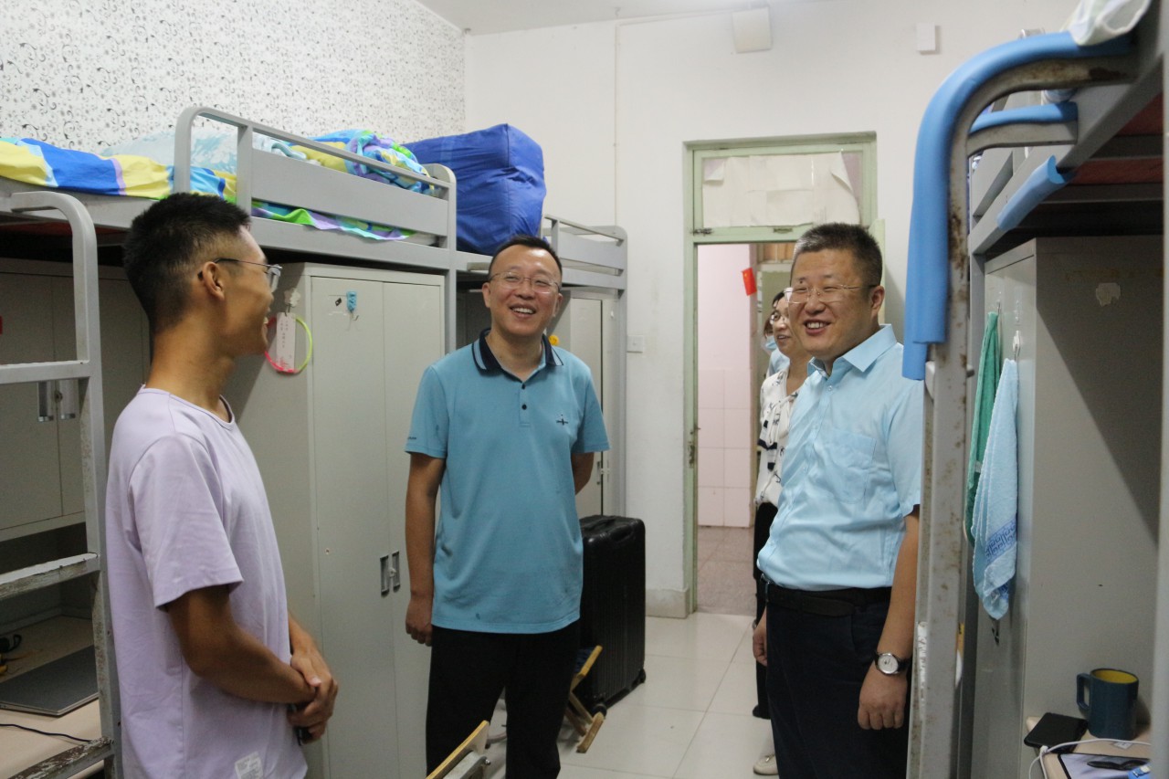 学院领导十分关心新生返校服务工作,beat365官方网站党委书记韩宝坤、院长张强、党委副书记陈猛来到迎新点检查迎新工作,走入宿舍亲切问候学子。