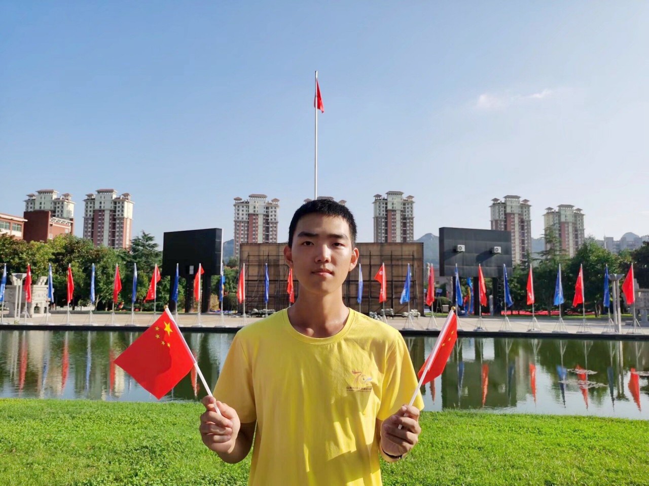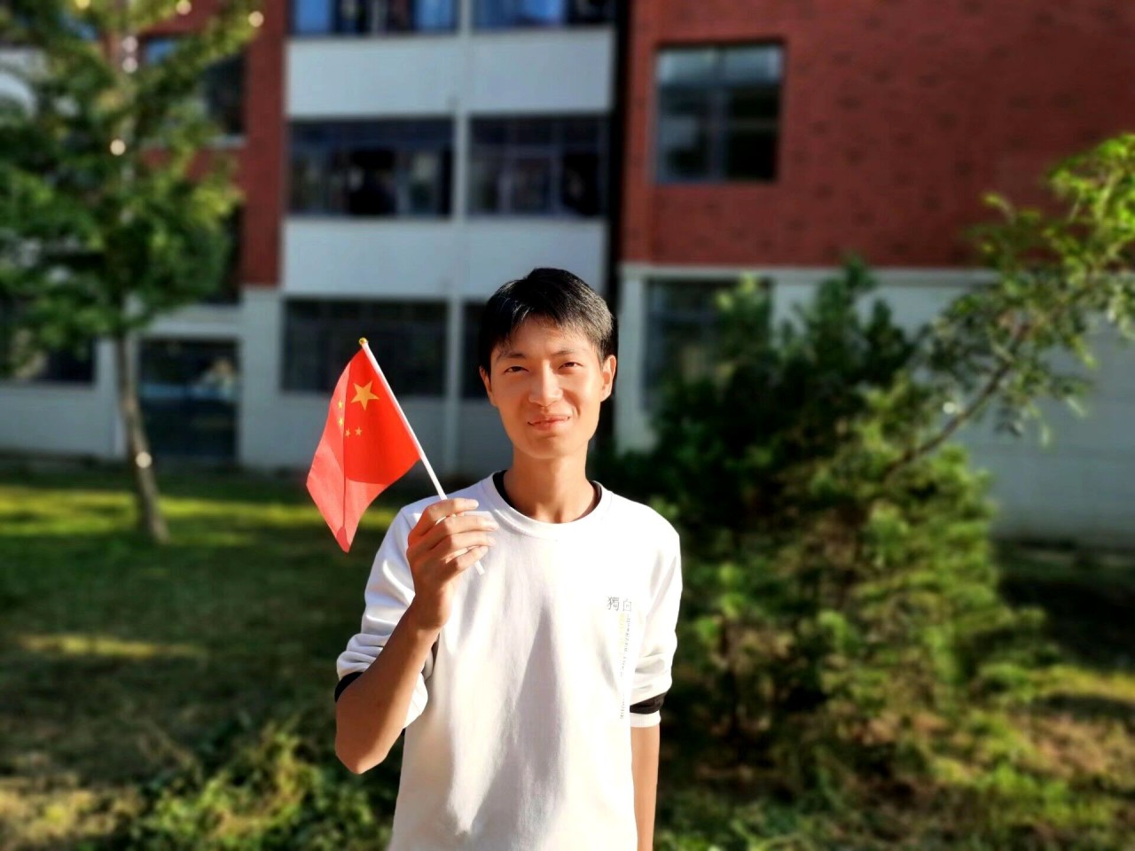 清晨,阳光明媚,微风正好,同学们纷纷走出宿舍,或手执五星红旗,或佩戴国旗徽章,前往校园各处与国旗合影。一时间,泰山广场、墨水河旁、风雨操场、砚湖旁、钟楼广场等地,机电学子来来往往,五星红旗飘飘扬扬。同学们手执国旗站在镜头前,脸上骄傲自豪的笑容被一张张照片记录下来,这就是青春最美好的模样。一面面五星红旗随风飘扬,像一把把火炬,明亮闪烁,跳动着希望,跳动着辉煌。能源20-1班王奕原表示:“五星红旗,是每一个中国人的骄傲,它让祖国的山山水水喜气洋洋,让四海炎黄子孙扬眉吐气,心花怒放。我爱你,五星红旗,我爱你,我的祖国。”