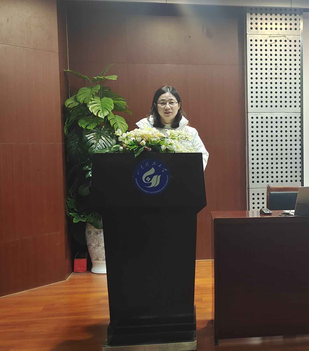 徐凯军以“以奋斗姿态,磨砺无悔青春”为主题,向同学们介绍了自己从2020年初作为抗疫先锋队员奋斗在抗议前线,后又在胶州汽车站、社区进行防疫工作的经历。作为一名曾扎根基层的社区工作者,徐凯军以生动的话语向同学们讲述了基层工作的苦与乐:“尽管面临过天气寒冷、物资短缺、个别人员不理解的重重困难,但看到大家的生命健康得到保障,重新恢复有序的工作生活时,我的心里便充满了幸福感,我想那便是基层工作的魅力。”