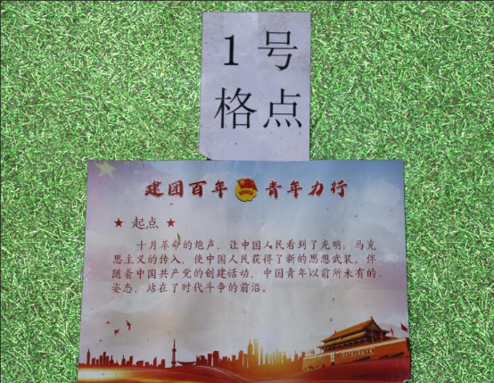 为让参赛队伍在游戏过程中了解到更多关于中国共青团的革命历史,活动工作人员将游戏格点浓缩为建团百年来的奋斗历程,一个游戏格点处设置一项历史重大事件,以文字的形式介绍历史事件的时间、地点和意义。
