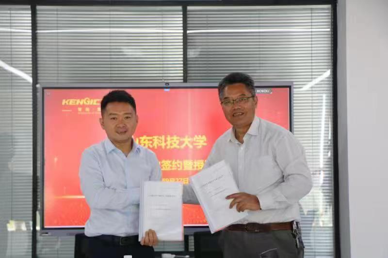 学院走访团首先来到科捷智能科技股份有限公司,与公司董事长龙进军和研发中心负责人孙袁博士等进行了合作交流座谈。走访团队率先参观了企业展厅和车间,双方就共同申报项目、企业委托开发、实验室共建、学生就业等方面进行了深入交流,李书记和龙董事长分别代表校企双方签订了教学实习基地协议,并举行了授牌仪式。