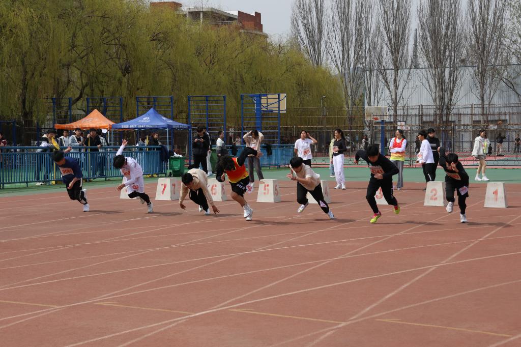 春意盈盈,惠风和畅,运动员们热血沸腾,摩拳擦掌。100米栏赛场上,运动员们目光坚定,翻越重重障碍,奋力冲向终点;投掷场上,铅球、铁饼与标枪从他们手中脱离,画出完美的弧线而后落地;短跑运动员们矫健如燕,迅疾似鹰,在赛道上奋力冲刺;长跑运动员们比拼耐力,在同学们热烈的加油声中坚持到底;跳高运动员们奋力一跃,用那矫键的身躯,跳跃出一个又一个的高度;跳远场地上也留下他们坚实的脚印……绿荫操场上,运动员们热血奋斗,同学们的加油助威,自成一道亮丽的风景线,裁判员们守正不阿,保证竞技项目公平有序开展;工作人员们坚守岗位,为运动会顺利举行保驾护航。
