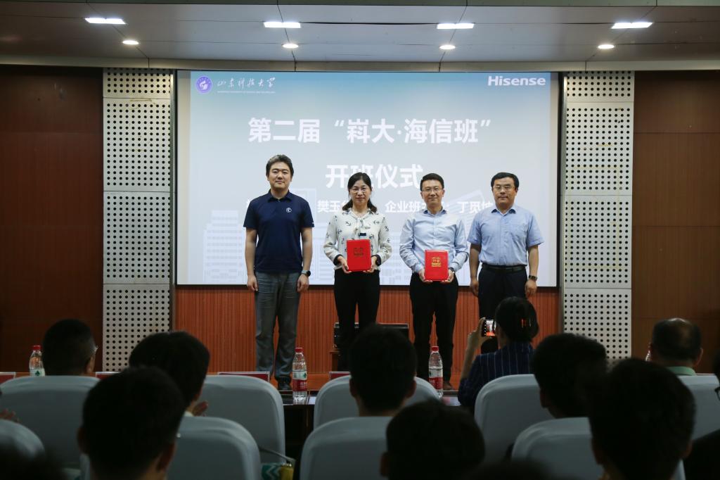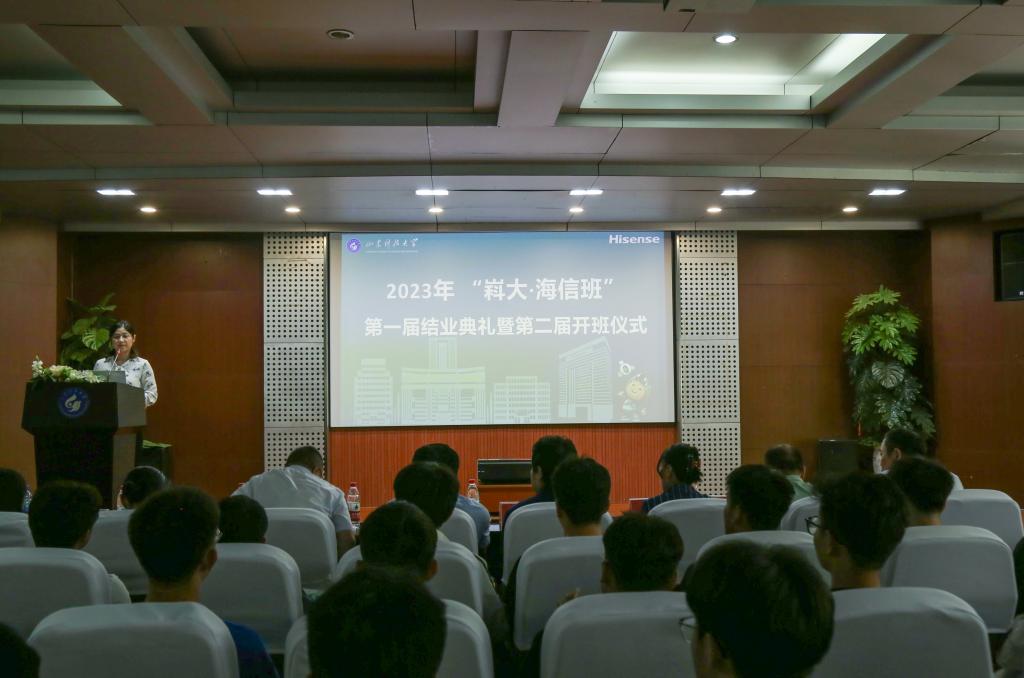 王荣超致辞表示,“嵙大·海信班”的持续开展是beat365官方网站进一步推进产教融合、加快建设双一流高校的有力支撑,旨在培养复合型、创新型人才,全力打造高水平的校企合作发展模式,以助推新旧动能转换重大工程为契机,积极探索校企合作的新模式,打造校企合作新样板,实现学校、企业、学生和社会的互利多赢。他期望,山科学子秉承 “惟真求新”的校训,珍惜青春年华,勤奋学习、刻苦钻研、锻炼本领、学会感恩,坚持科技自立自强,不断提升服务国家、服务民族、服务企业发展的过硬本领,以优异的成绩回报母校、回报企业、回报社会。