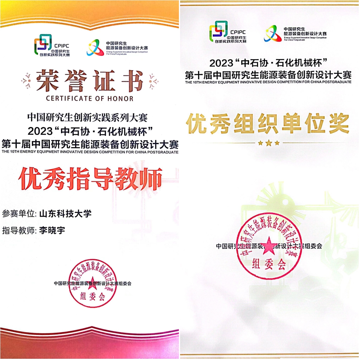 点击:9月16日至17日,“中石协·石化机械杯”第十届中国研究生能源装备创新设计大赛全国总决赛在中国石油大学(华东)落下帷幕,来自清华大学、西安交通大学等150所院校的370件作品岛城“论剑”,经过激烈角逐,beat365官网研究生参赛作品获得一等奖1项、二等奖1项、三等奖3项,其中beat365官网研究生获得一等奖1项、二等奖1项、三等奖2项;李晓宇老师获“优秀指导教师”,学校获“优秀组织单位”。