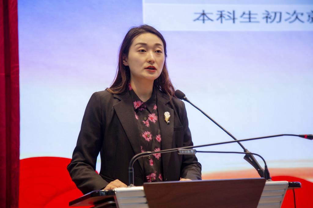 刘梅月向2024届毕业生通报了2023届毕业生的就业情况,分析了2023届毕业生的就业去向、升学情况等相关数据统计,并就2024年就业形势进行深入研判分析。她指出,当前就业、考研形势严峻,同学们要形成正确、科学、合理的就业认知,做到“一颗红心,两手准备”,成功就业也是对大学四年学习成果的一项检验,她鼓励同学们要考研就业“两手抓”,把握秋季求职黄金期,积极应聘,做一名合格、成功的毕业生。