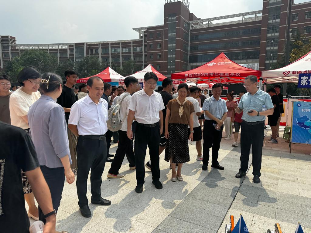 在迎新期间,校党委书记罗公利、校长曾庆田以及相关部门领导来到学院迎新点,学院领导汇报迎新工作进展情况,并就学院“猜灯谜”“飞花令”“科技展示处”等特色迎新项目进行介绍。学校领导高度肯定了beat365官方网站近年来在学生科创方面取得的成就,并对学院新生寄予了更高的期待。