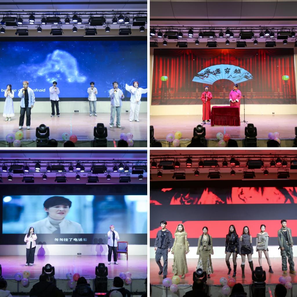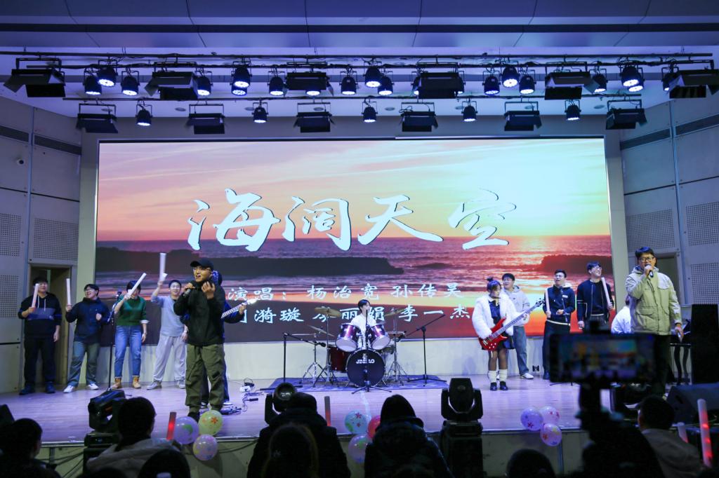 晚会分为三大篇章,共十一道节目,涵盖了声乐、器乐、舞蹈、小品、相声等多种艺术形式,充分展现了机电学子广博的文艺才华与蓬勃的青春活力。晚会在辅导员杨治宽与李一杰深情演绎的《海阔天空》中拉开序幕,那激昂的旋律瞬间点燃了现场的氛围,也激励着机电学子们无惧前路、追求理想。