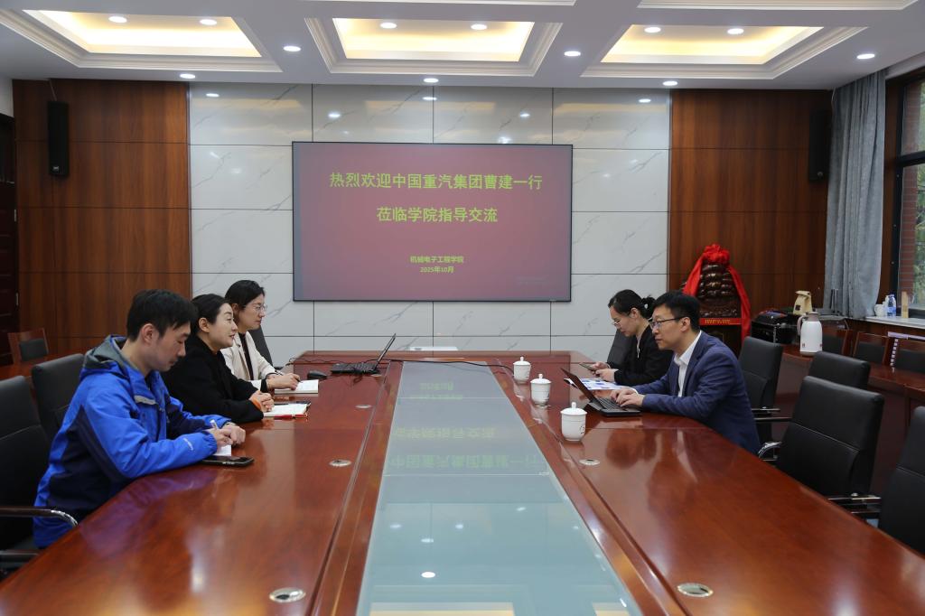 点击:10月30日上午,中国重汽集团国际公司党委副书记、副总经理、工会主席曹建率队赴beat365官方网站考察交流,双方围绕产教融合、人才培养等议题展开深入洽谈。beat365官方网站党委副书记兼副院长刘梅月主持座谈会,学工办主任(团委书记)樊玉华、毕业班辅导员宋阔参与交流。