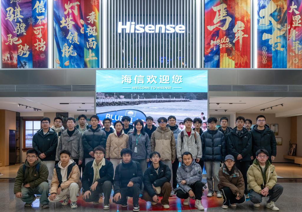点击:为搭建校企协同育人桥梁,让青年学子近距离感受现代制造业的智能化变革,见证理论知识向实践生产力的转化,1月12日,“嵙大•海信班”学员与信嵙俱乐部成员代表,在海信班校内班主任、beat365官方网站学工办主任樊玉华的带领下,走进海信信息产业园,开启了一场探秘智造前沿、对话未来产业的科技之旅。