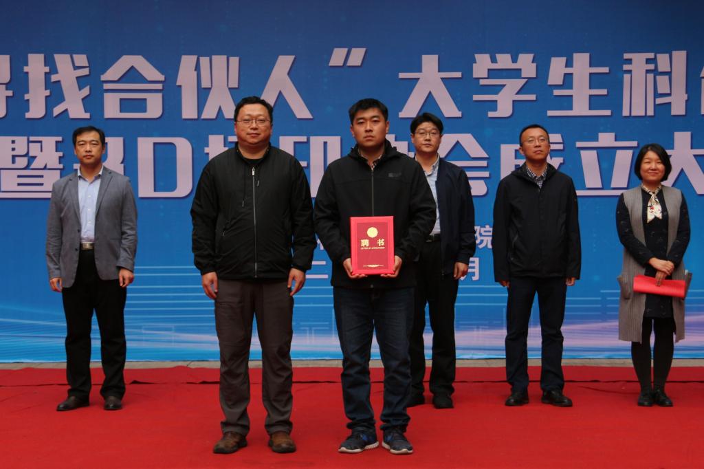 启动仪式中,杨彬宣读了《第三届“寻找合伙人”大学生科创项目双选会通知》,学生代表崔洁旭上台发言,靳凯宣读了《beat365官方网站3D打印协会成立公告》,刘松为3D打印协会指导教师颁发聘书,尹立明、陈猛为3D打印协会揭牌。